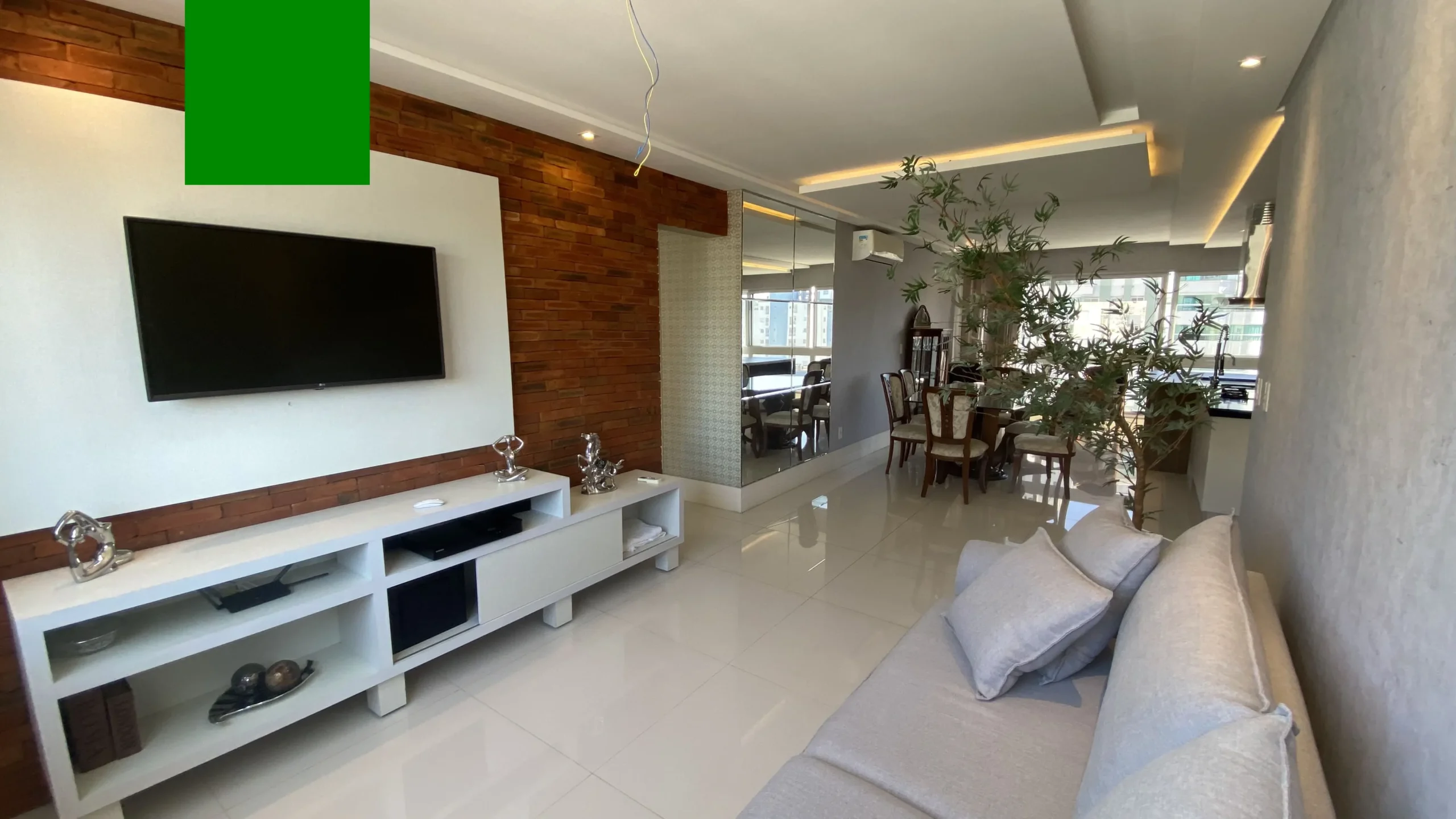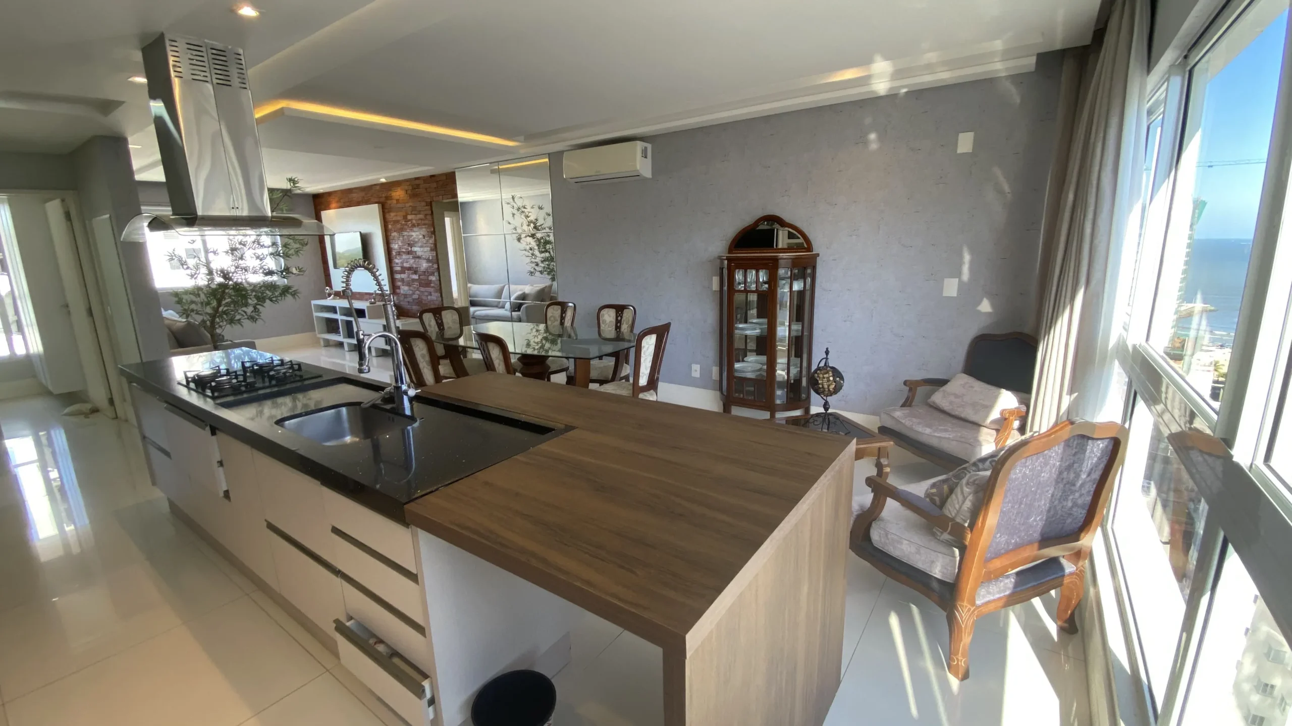 ° Amplo living integrado à sacada com churrasqueira a carvão;